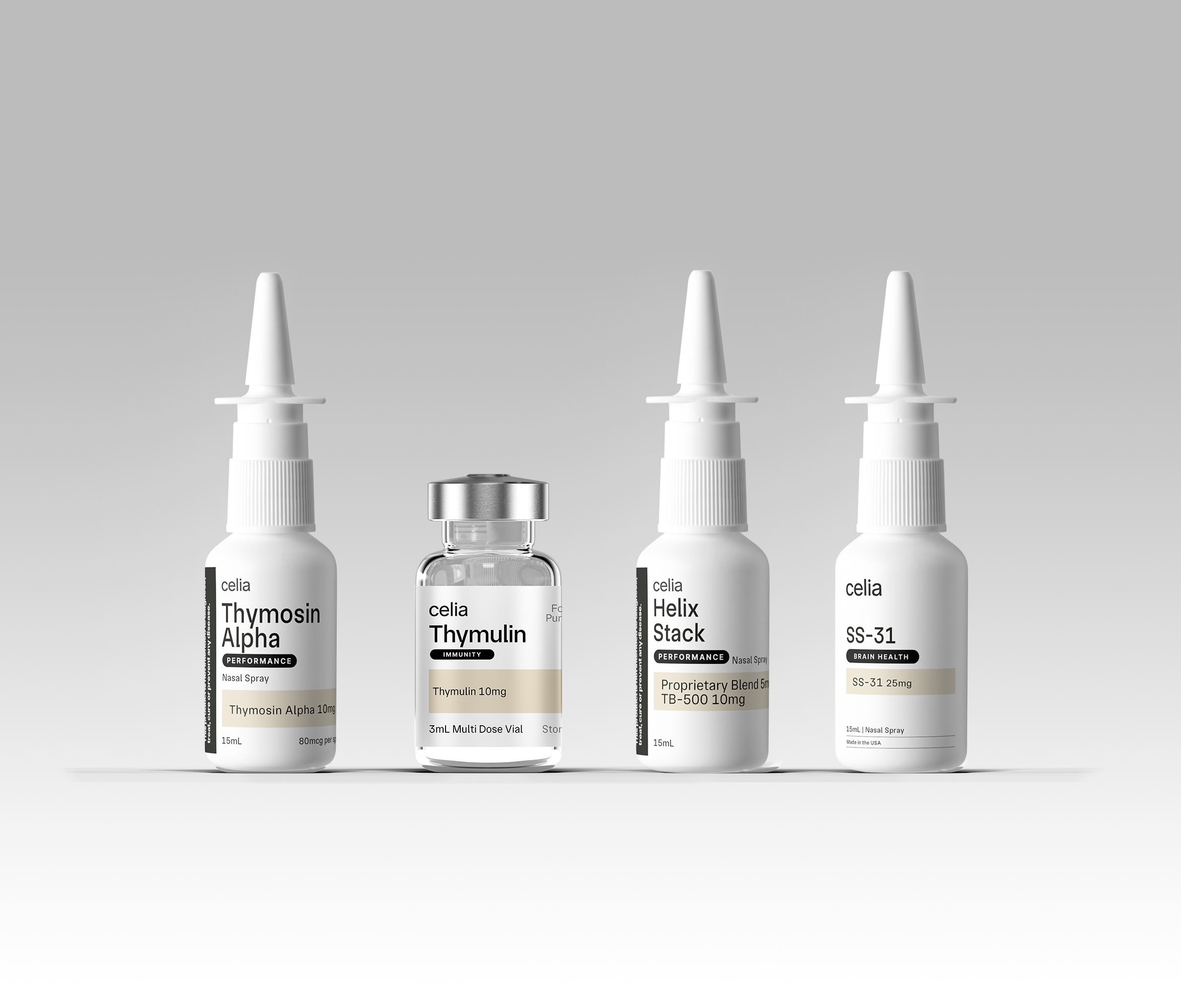 The Immunity Stack combines Thymulin, Thymosin Alpha, SS-31, and the Helix Stack — a comprehensive formulation being studied for their potential roles in supporting immune balance, cellular resilience, and recovery. This combination may help promote healthy immune signaling, mitochondrial stability, and tissue integrity, key components of overall vitality and defense. Together, these peptides may help support optimal immune function, oxidative balance, and cellular renewal.