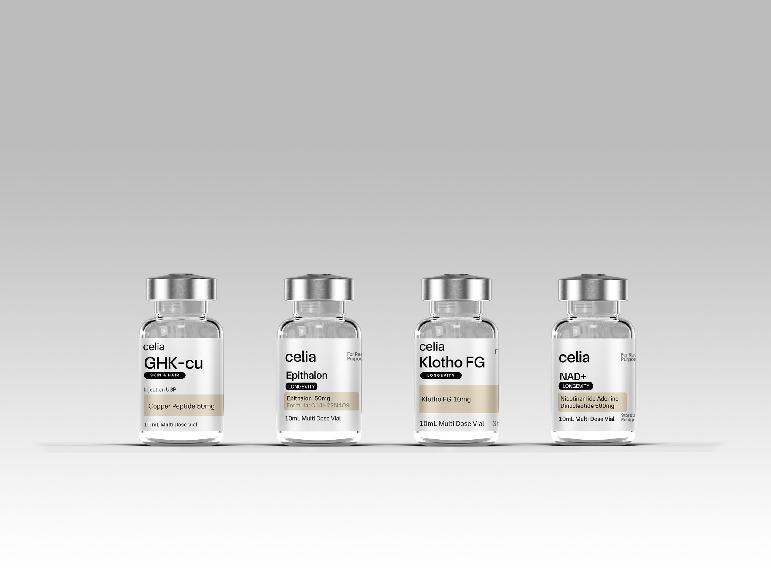 Longevity Stack combines Klotho, Epithalon, GHK-Cu, and NAD+ to support cellular renewal, energy balance, and overall vitality. This blend may help promote mitochondrial function, collagen integrity, and healthy aging processes—key elements for maintaining long-term resilience and systemic wellness. Together, these peptides may support optimal cellular function, tissue repair, and graceful aging from the inside out.