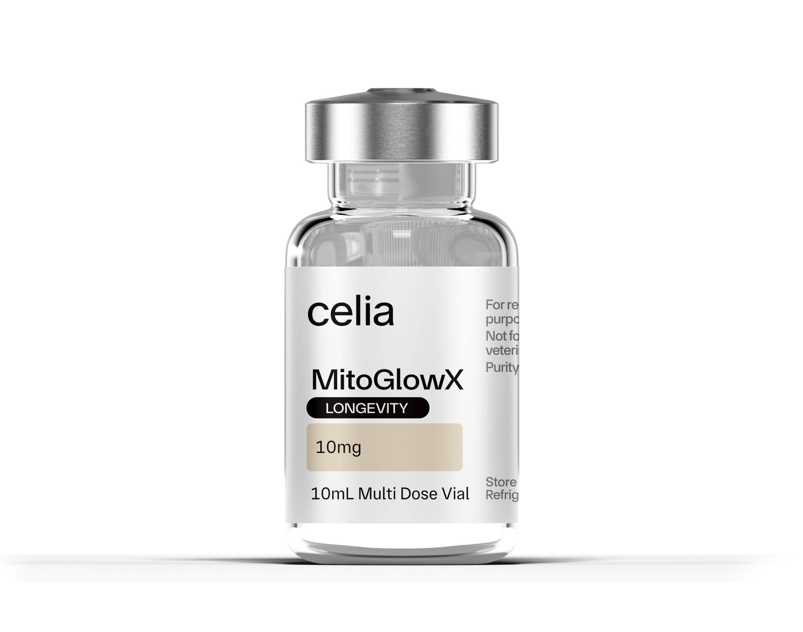 MitoglowX is a mitochondria-targeting peptide being studied for its antioxidant and protective effects. It may help reduce cellular damage from mitochondrial dysfunction, supporting brain, heart, muscle, and metabolic health—particularly in the context of aging and chronic disease.